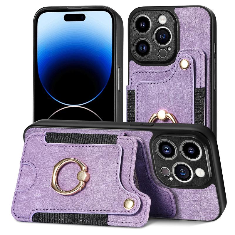 For iPhone 13 Retro Skin-feel Ring Multi-card Wallet Phone Case(Purple)