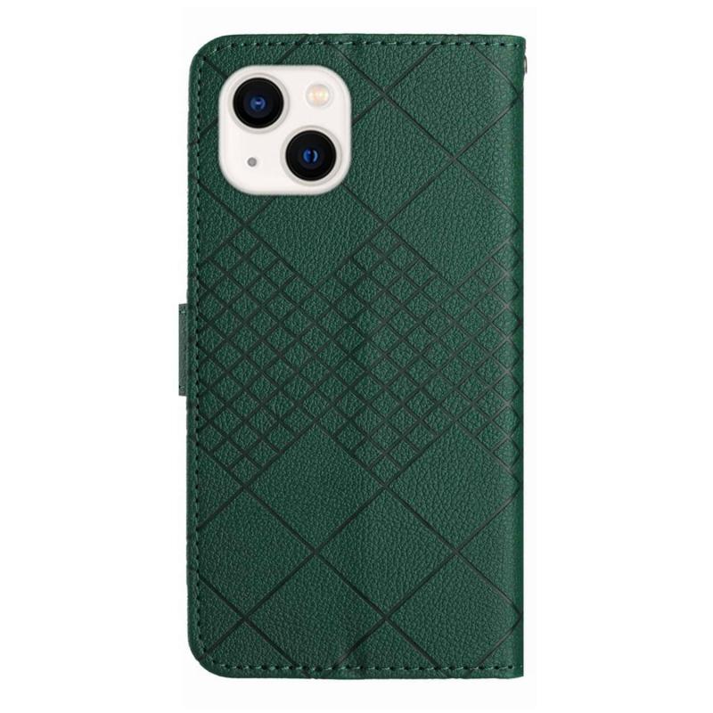 For iPhone 13 Rhombic Grid Texture Leather Phone Case(Green)