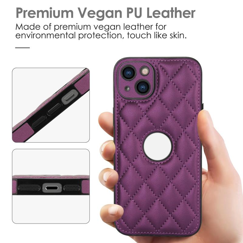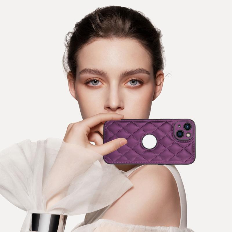 For iPhone 13 Rhombic Leather Back Cover Phone Case(Dark Purple)