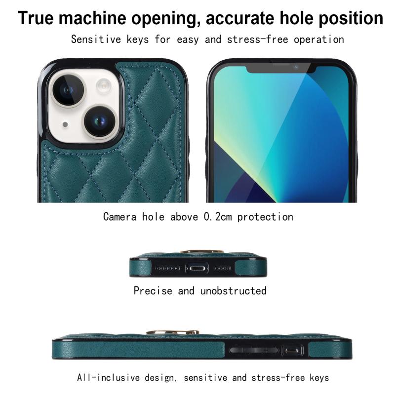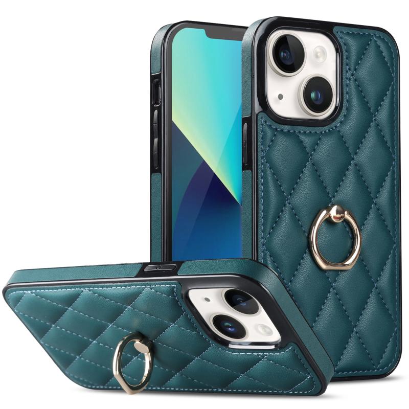 For iPhone 13 Rhombic PU Leather Phone Case with Ring Holder(Green)