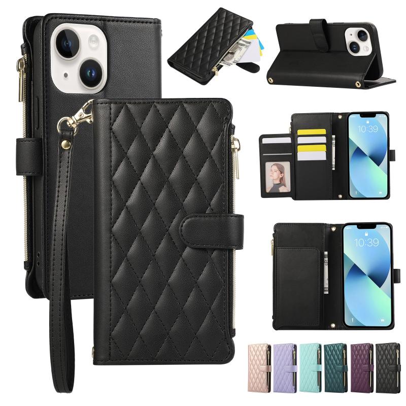 For iPhone 13 Rhombic Zipper Wallet Leather Phone Case(Black)