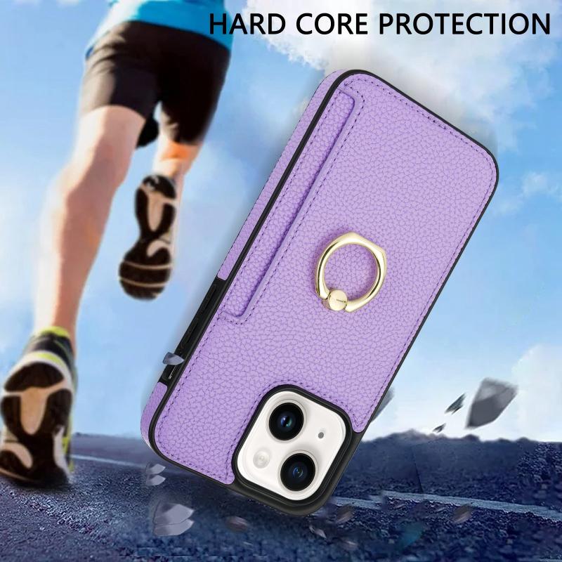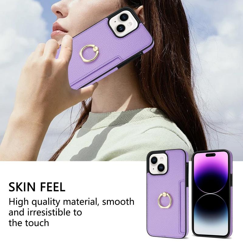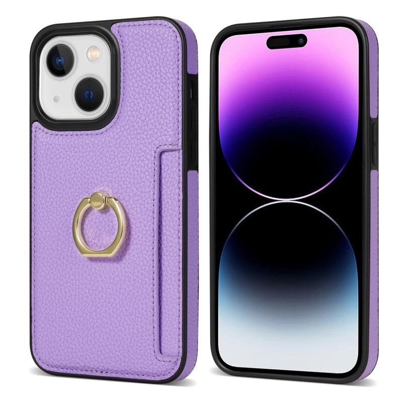For iPhone 13 Ring Card Litchi Leather Back Phone Case(Purple)