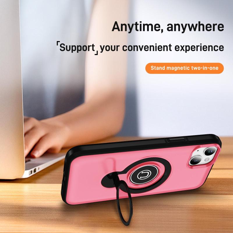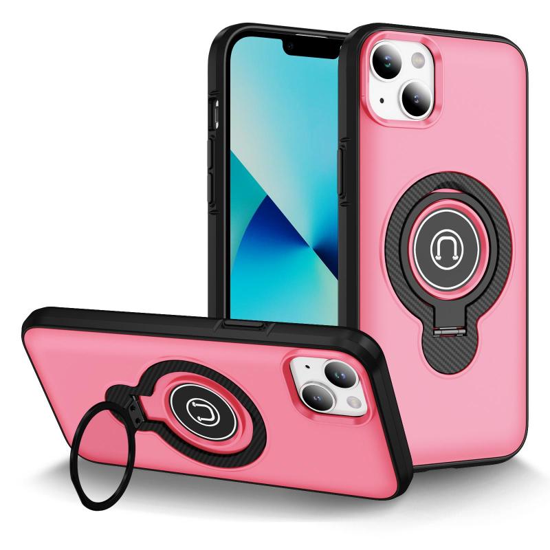 For iPhone 13 Ring Holder Magnetic Phone Case(Bright Pink)
