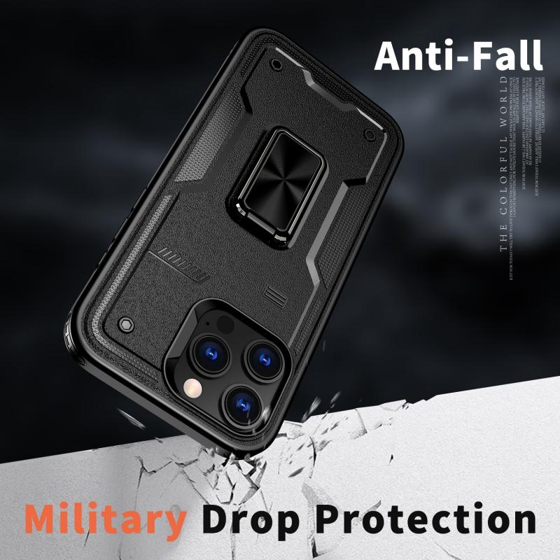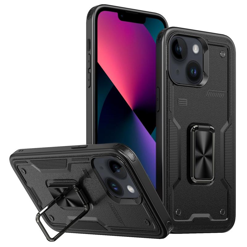 For iPhone 13 Ring Holder PC Hybrid TPU Phone Case(Black)