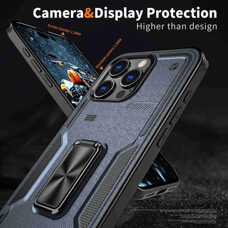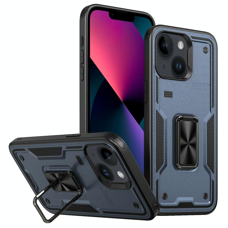 For iPhone 13 Ring Holder PC Hybrid TPU Phone Case(Navy Blue)