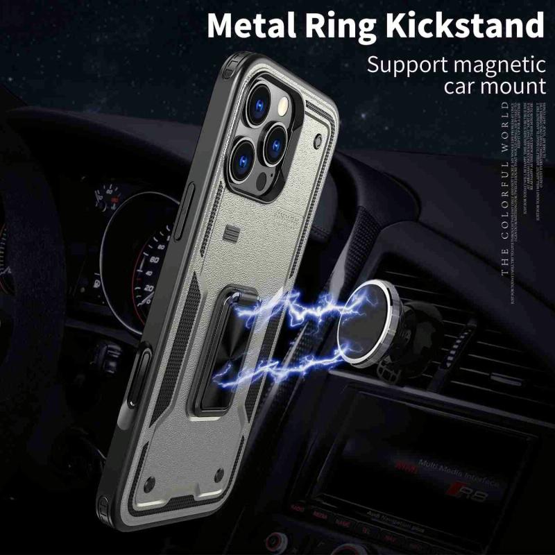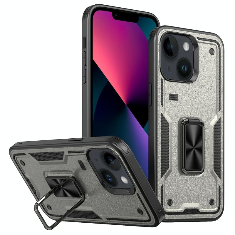 For iPhone 13 Ring Holder PC Hybrid TPU Phone Case(Titanium Grey)