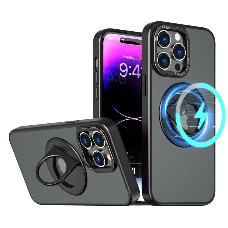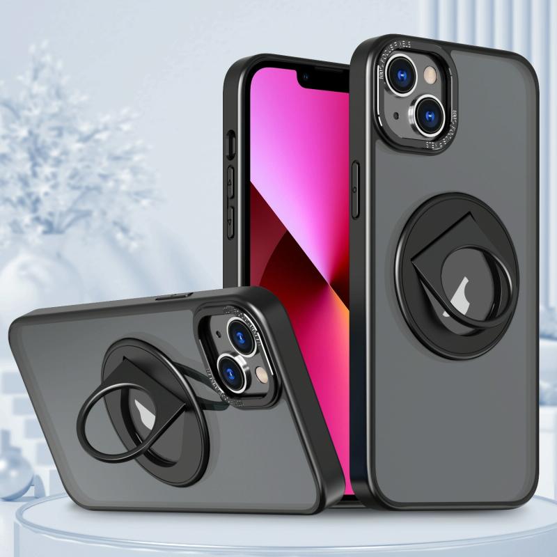 For iPhone 13 Rotating Ring Magnetic Holder Phone Case(Black)