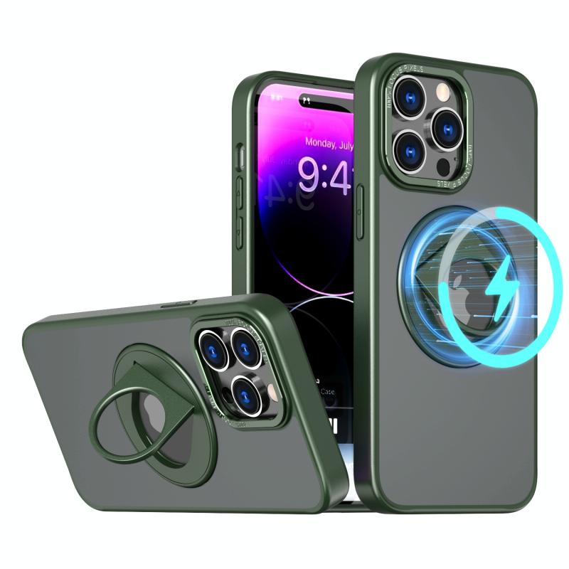 For iPhone 13 Rotating Ring Magnetic Holder Phone Case(Green)