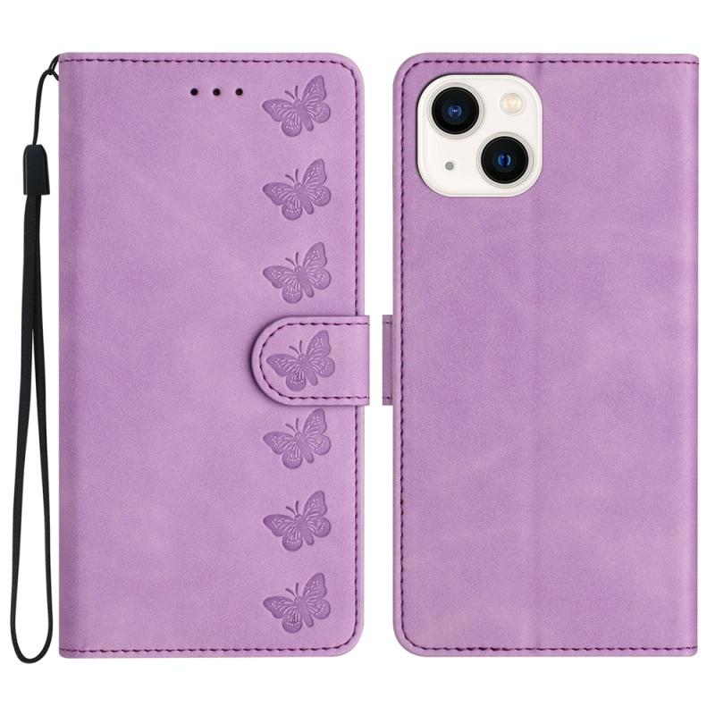 For iPhone 13 Seven Butterflies Embossed Leather Phone Case(Purple)