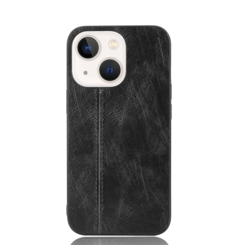 For iPhone 13 Sewing Cow Leather Soft PC Case(Black)