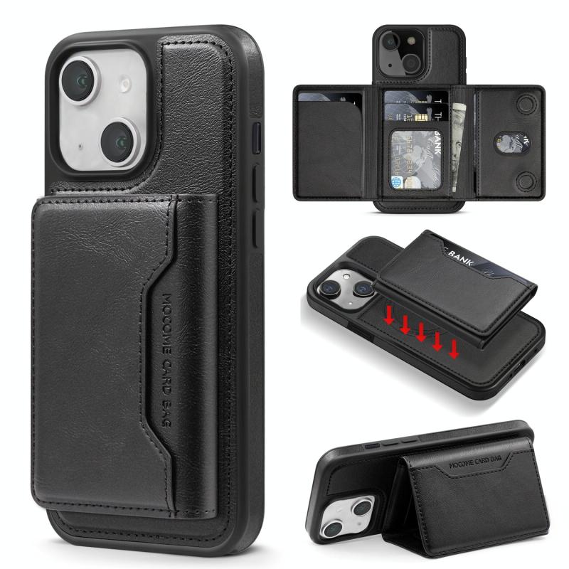 For iPhone 13 Shield Multi-functional MagSafe Card Bag Phone Case(Black)