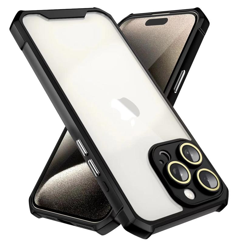 For iPhone 13 Shockproof Acrylic Phone Case with Lens Glass Film(Black)
