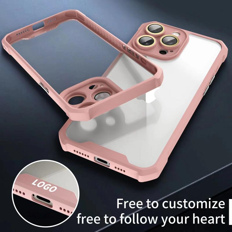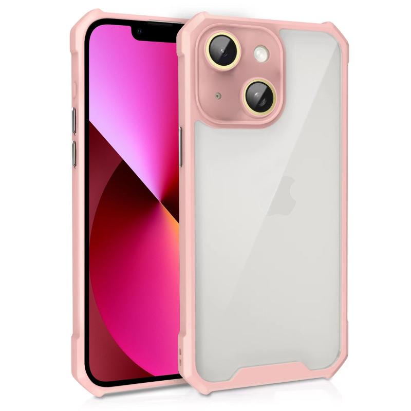 For iPhone 13 Shockproof Acrylic Phone Case with Lens Glass Film(Pink)