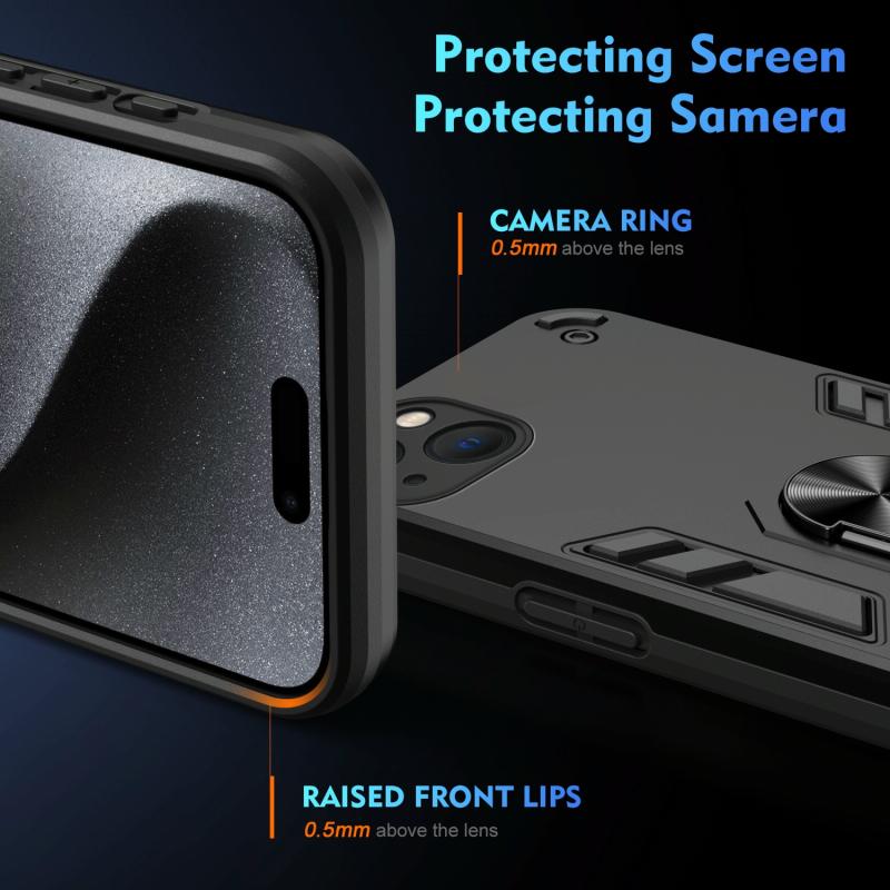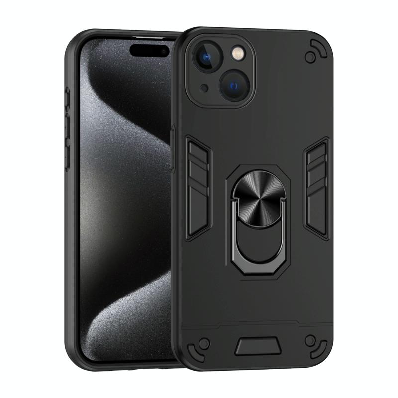 For iPhone 13 Shockproof Metal Ring Holder Phone Case(Black)