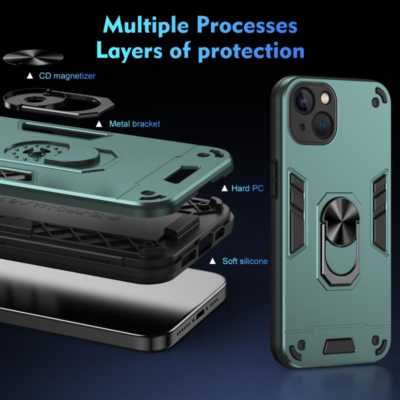 For iPhone 13 Shockproof Metal Ring Holder Phone Case(Green)