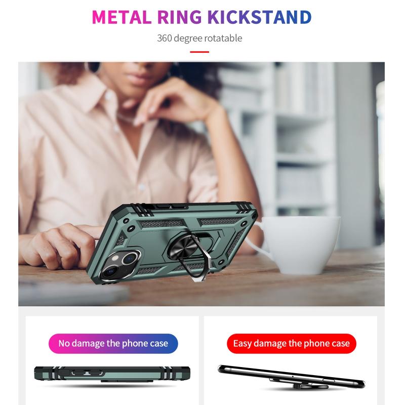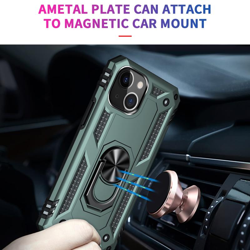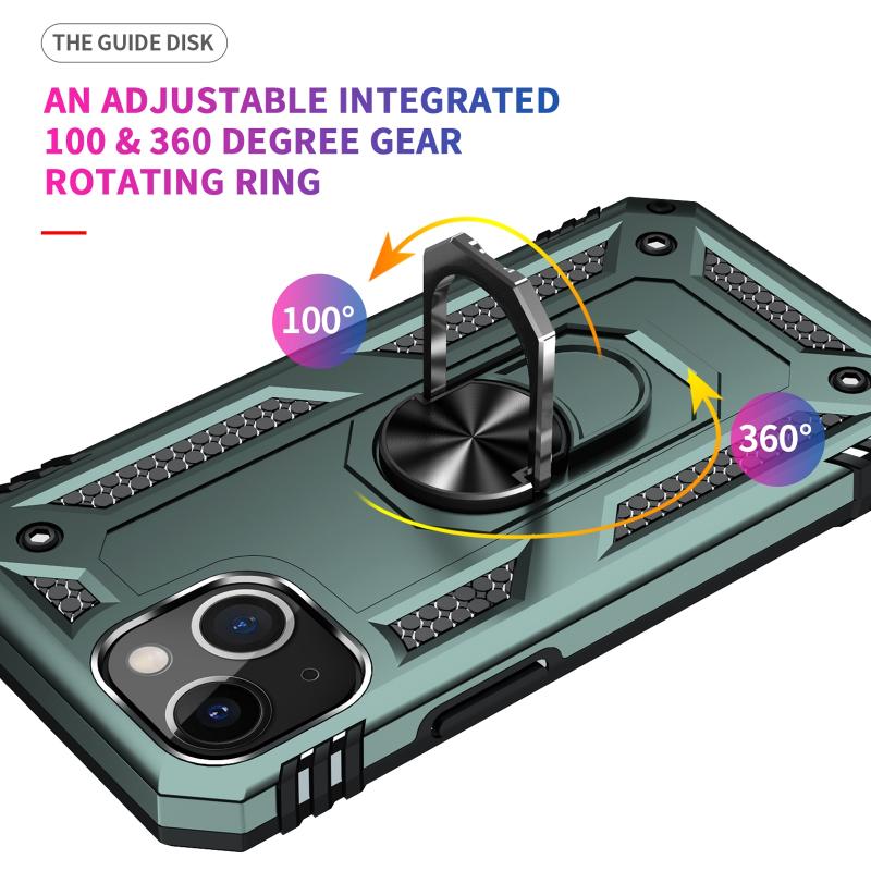 For iPhone 13 Shockproof TPU + PC Protective Case with 360 Degree Rotating Holder(Dark Green)