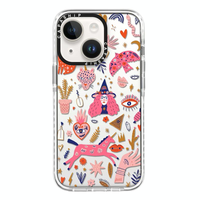 For iPhone 13 Simple Illustration Pattern Full Coverage Phone Case(Girl Stickers A)