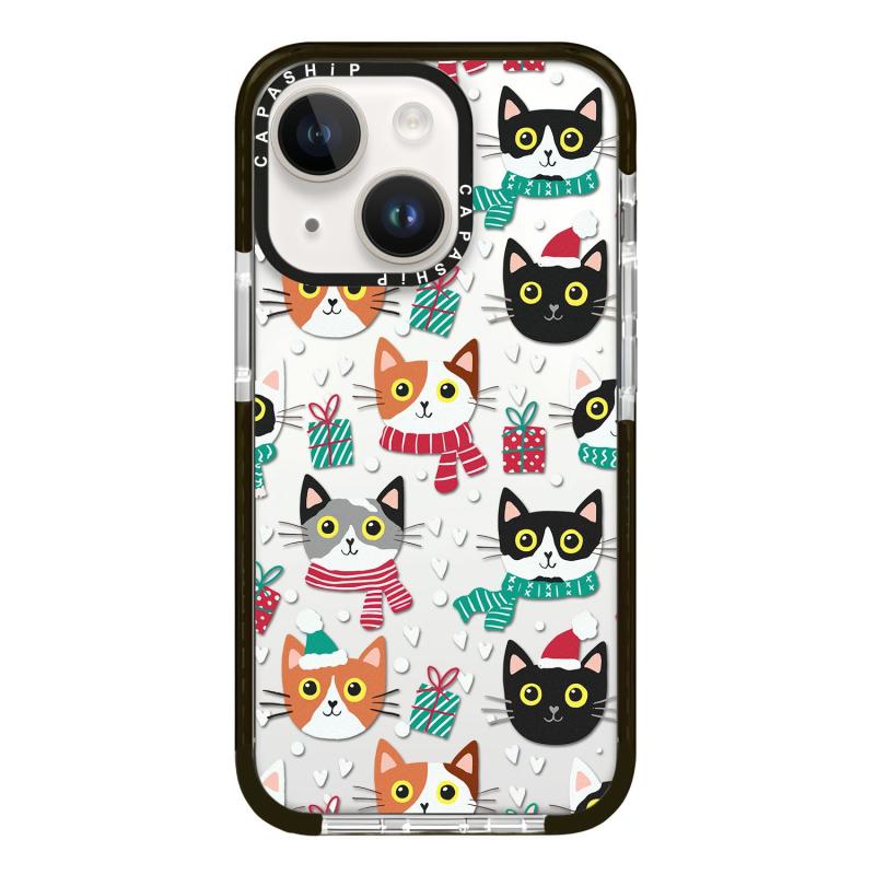 For iPhone 13 Simple Illustration Pattern Full Coverage Phone Case(Winter Cat)