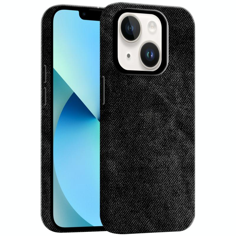 For iPhone 13 Skin Feel Denim Leather MagSafe Phone Case(Black)