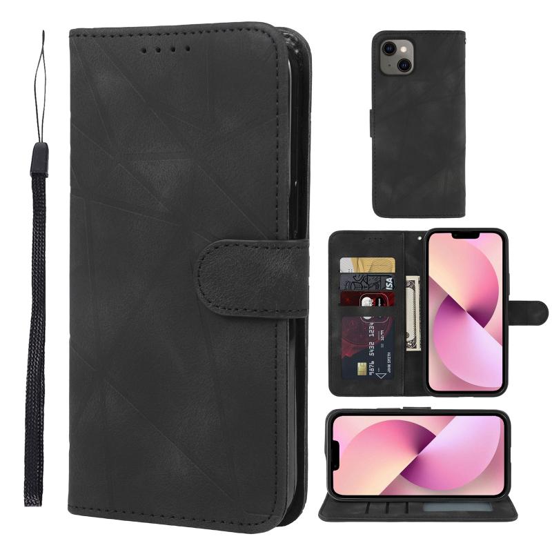 For iPhone 13 Skin Feel Geometric Lines Leather Phone Case(Black)