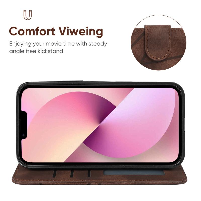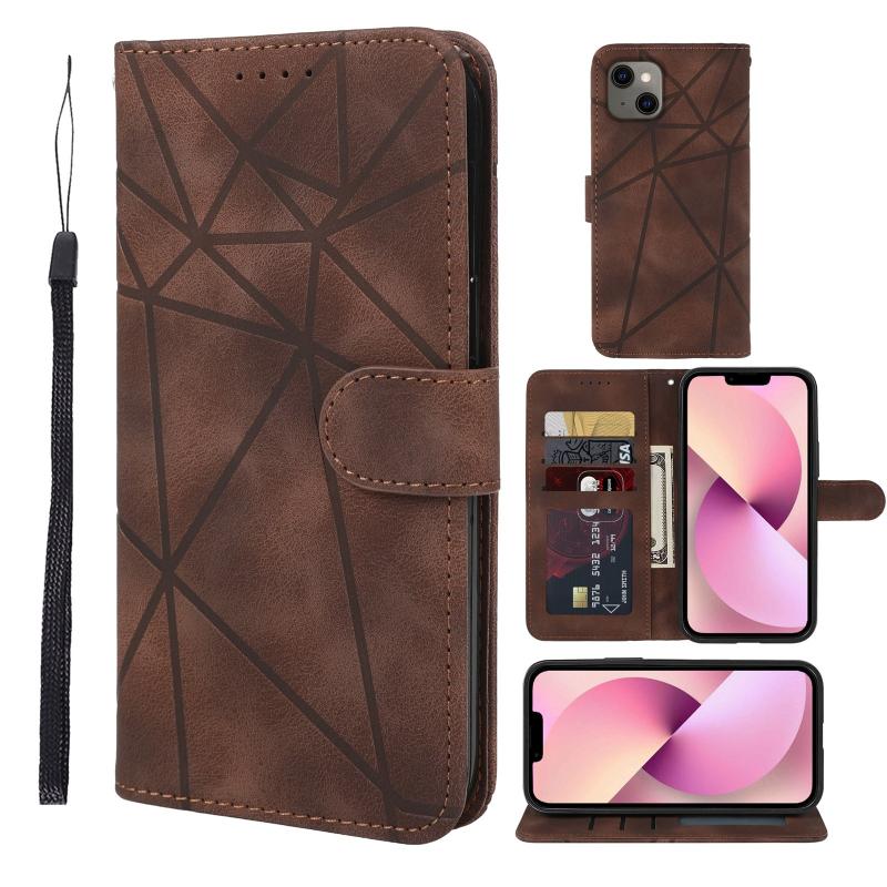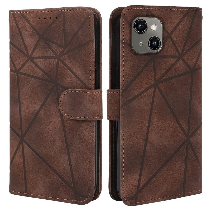 For iPhone 13 Skin Feel Geometric Lines Leather Phone Case(Brown)