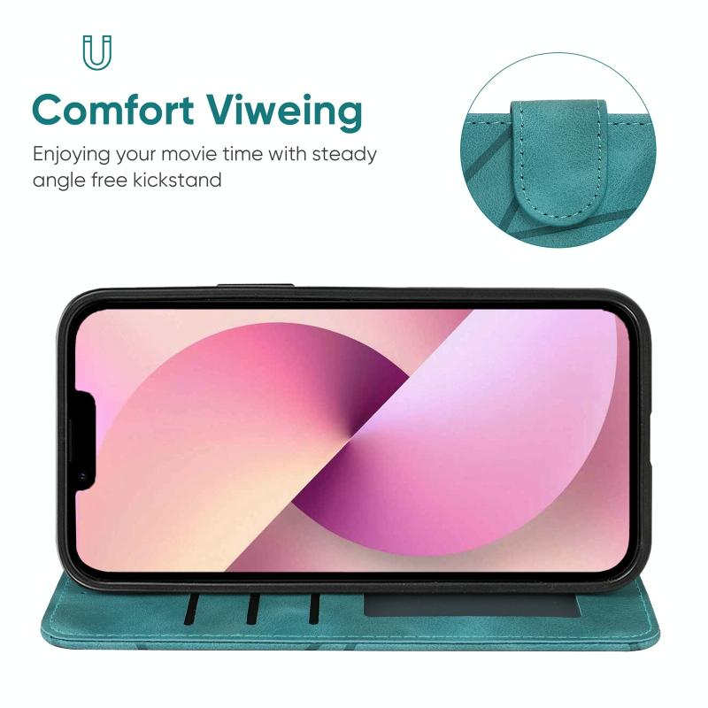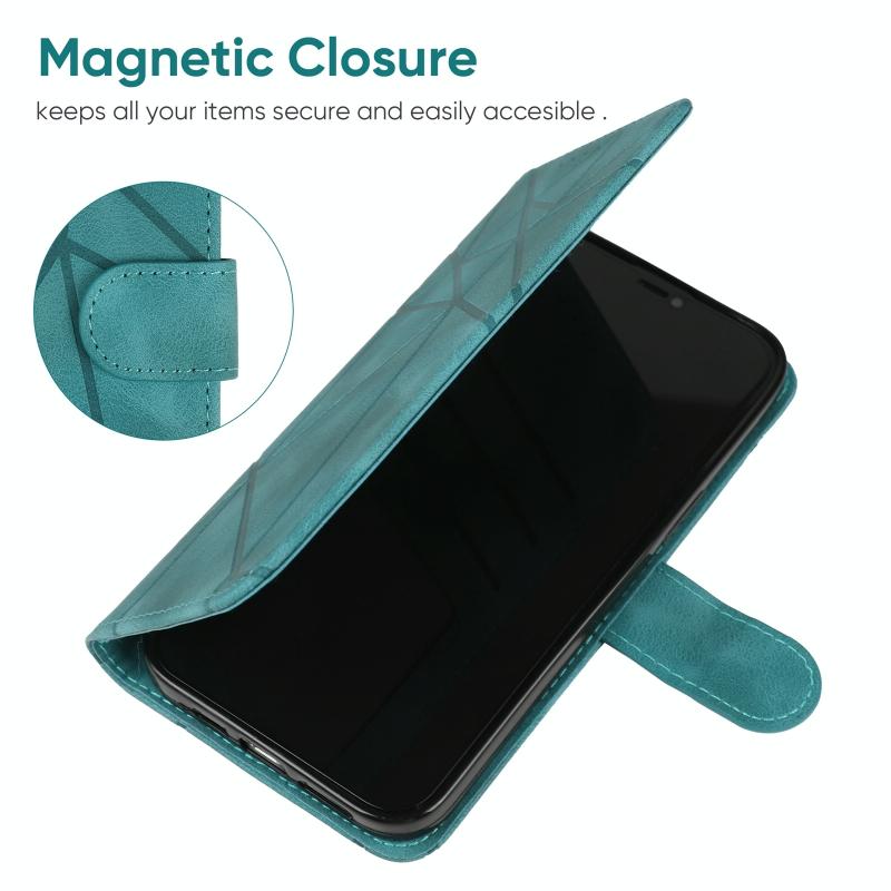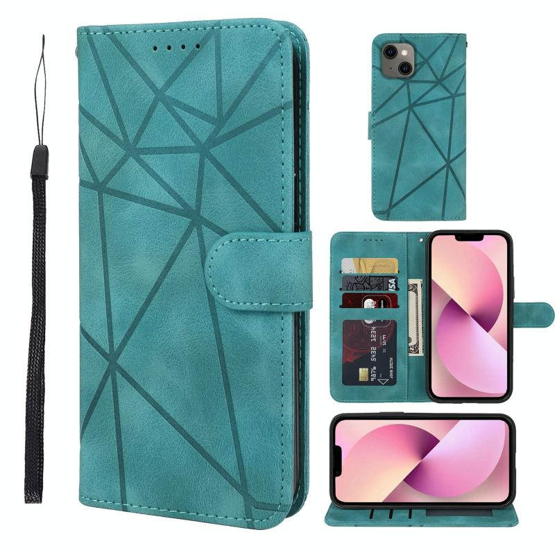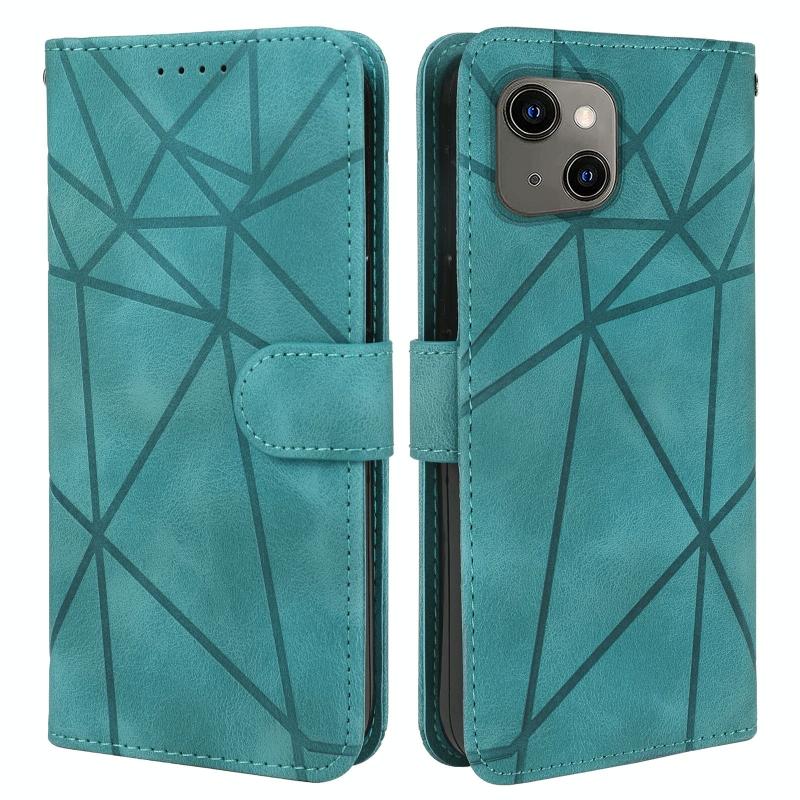 For iPhone 13 Skin Feel Geometric Lines Leather Phone Case(Green)