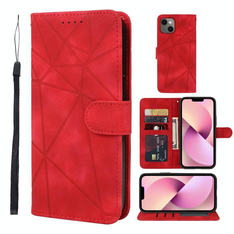 For iPhone 13 Skin Feel Geometric Lines Leather Phone Case(Red)