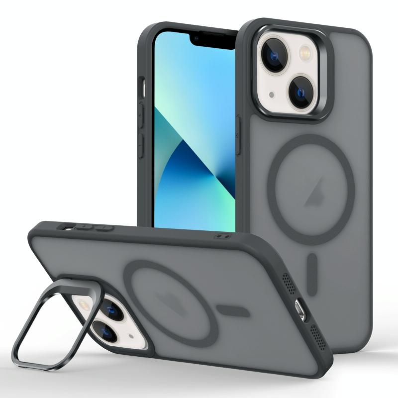 For iPhone 13 Skin Feel Lens Holder Magsafe Phone Case(Titanium Black)