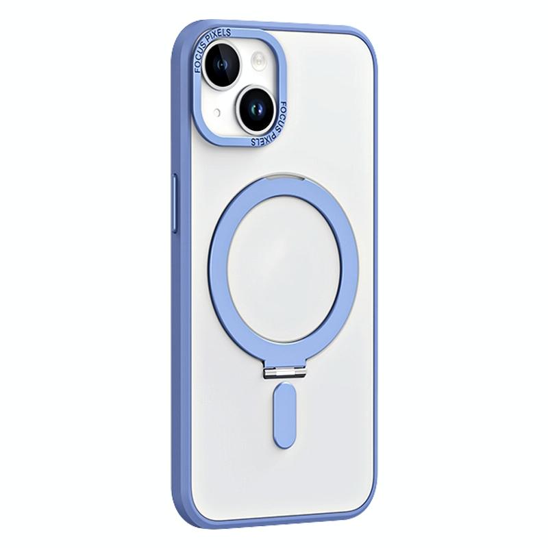 For iPhone 13 Skin Feel MagSafe Shockproof Phone Case with Holder(Light Blue)