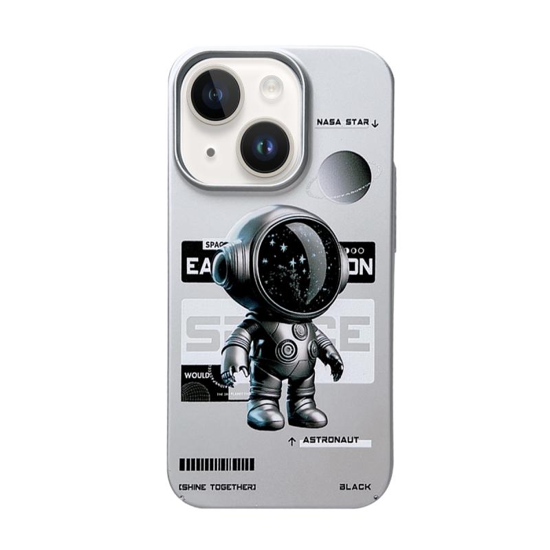 For iPhone 13 Skin Feel Pattern PC Phone Case(Sideways Metal Astronaut)