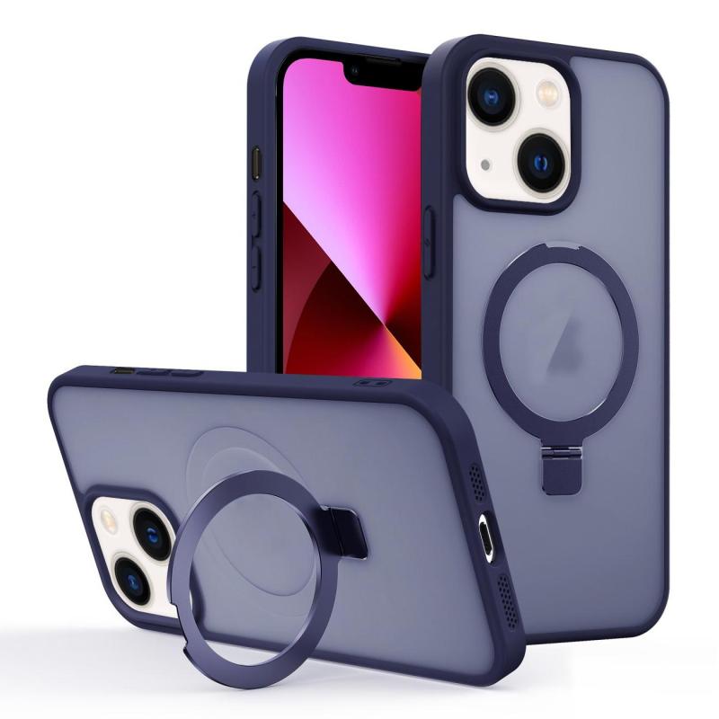 For iPhone 13 Skin-feel Ring MagSafe Holder Phone Case(Dark Blue)