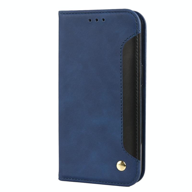 For iPhone 13 Skin Feel Splicing Leather Phone Case(Blue)