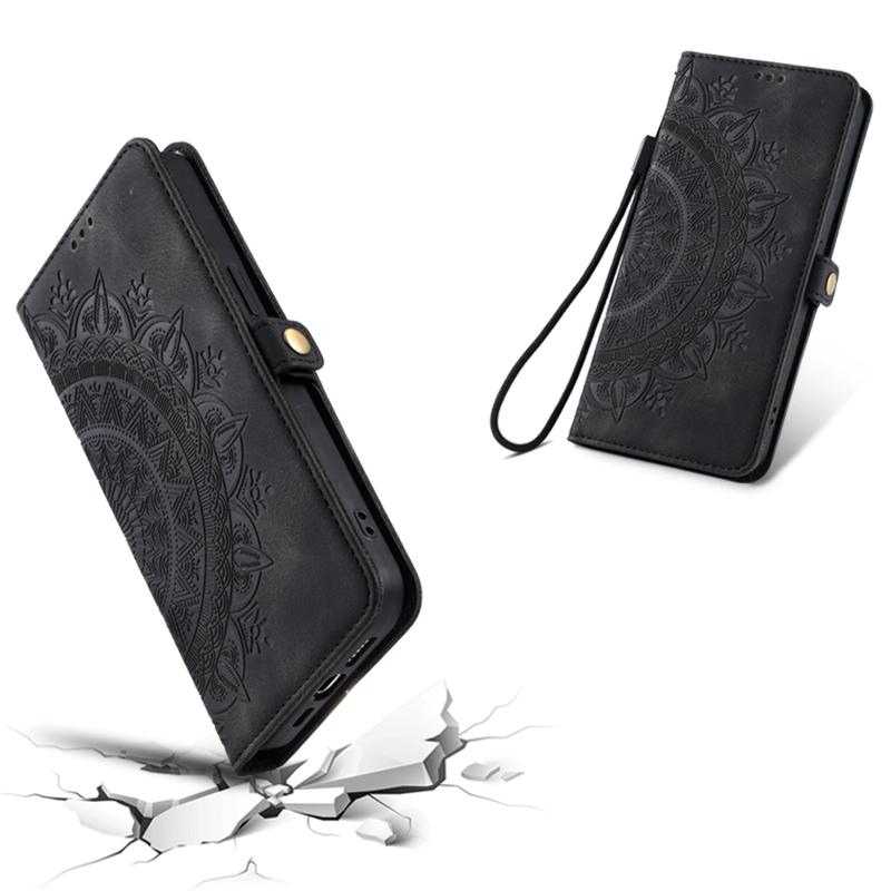 For iPhone 13 Skin Feel Totem Embossed Leather Phone Case(Black)