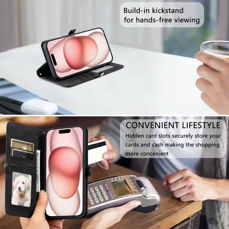2. Practical Card Holder Function: Includes card slots and a cash compartment for storing your credit cards, cash, or small notes.