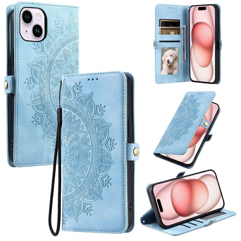 For iPhone 13 Skin Feel Totem Embossed Leather Phone Case(Blue)