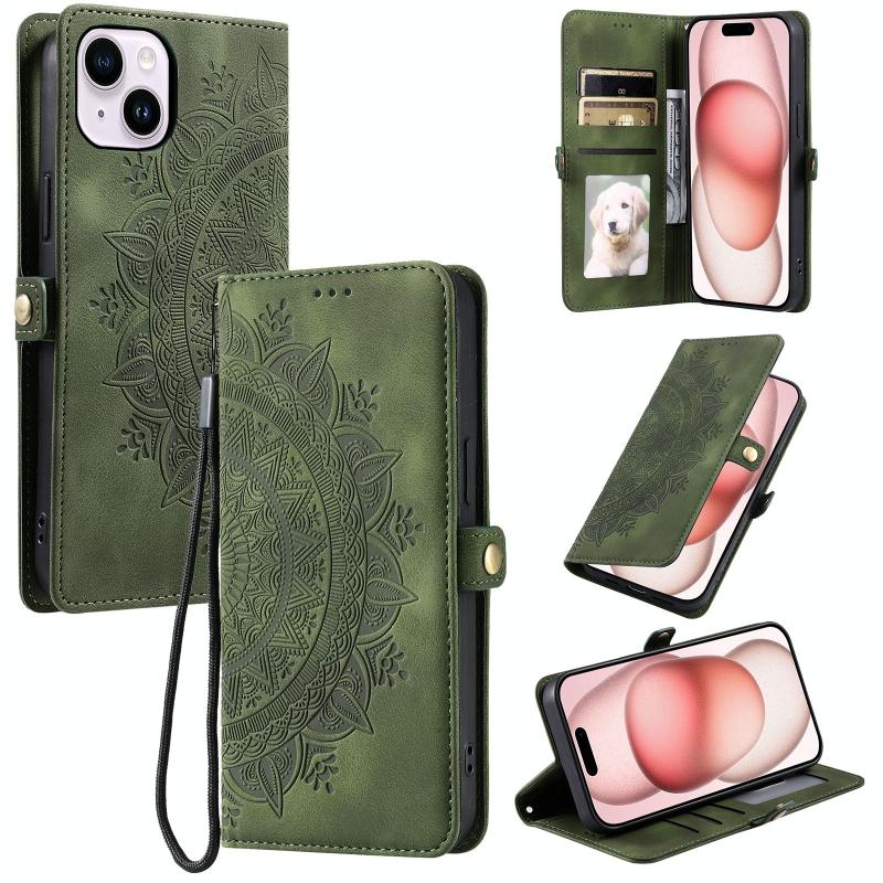 For iPhone 13 Skin Feel Totem Embossed Leather Phone Case(Deep Green)