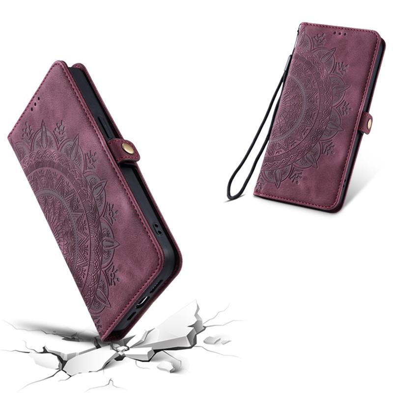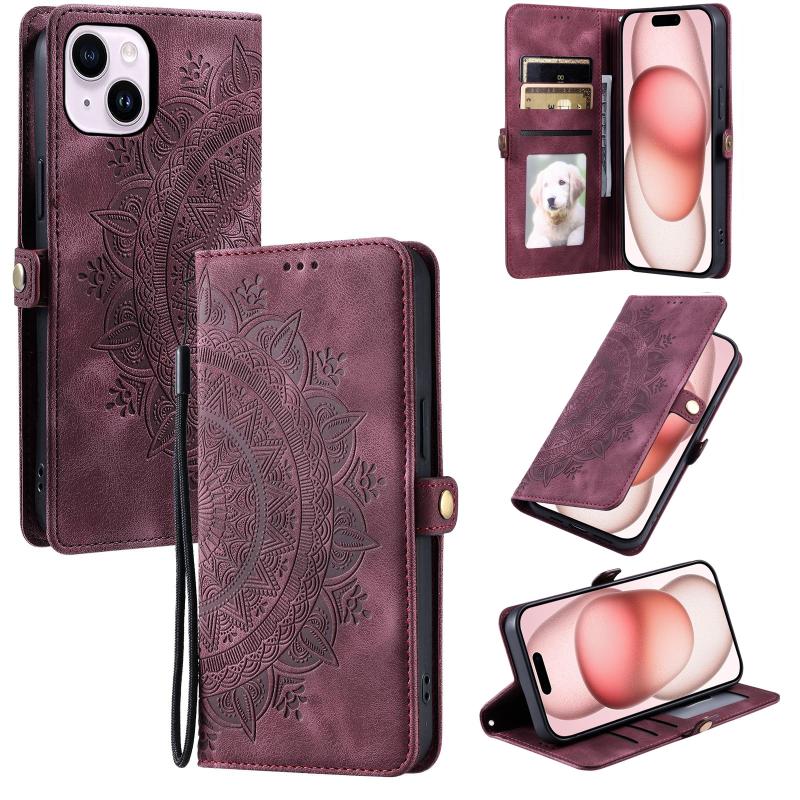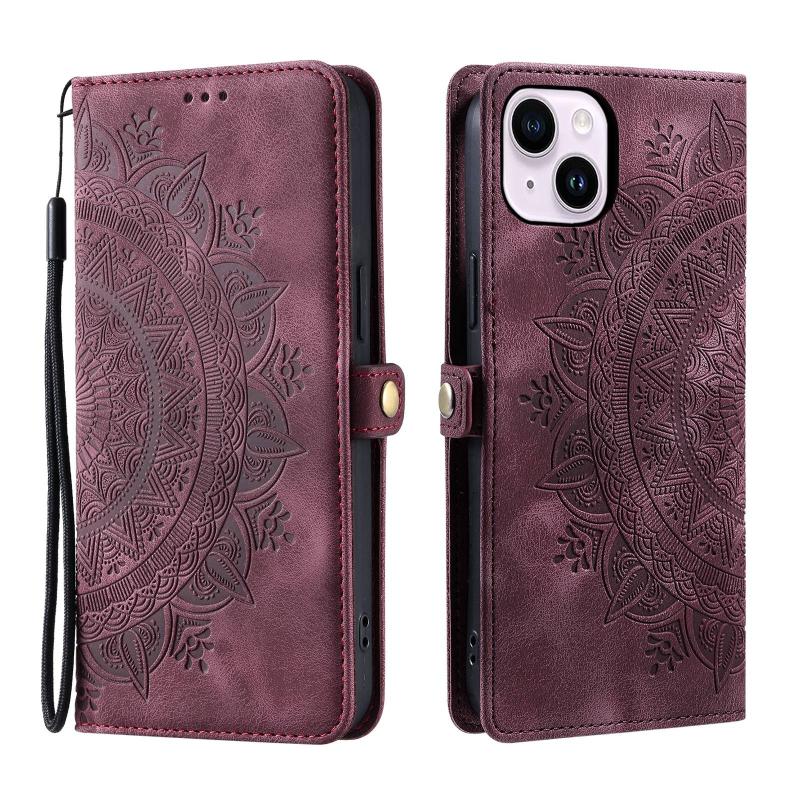 For iPhone 13 Skin Feel Totem Embossed Leather Phone Case(Wine Red)
