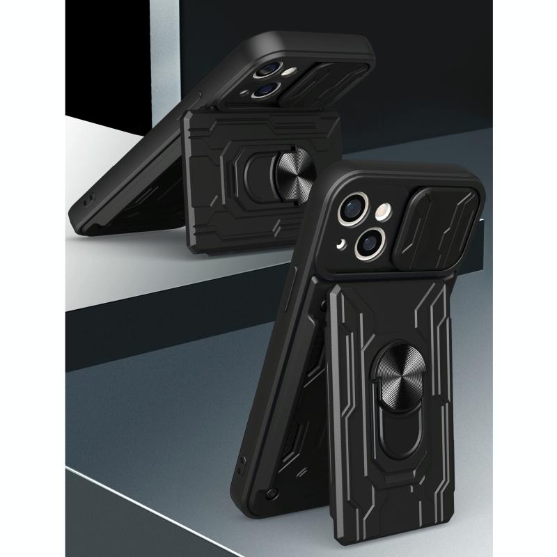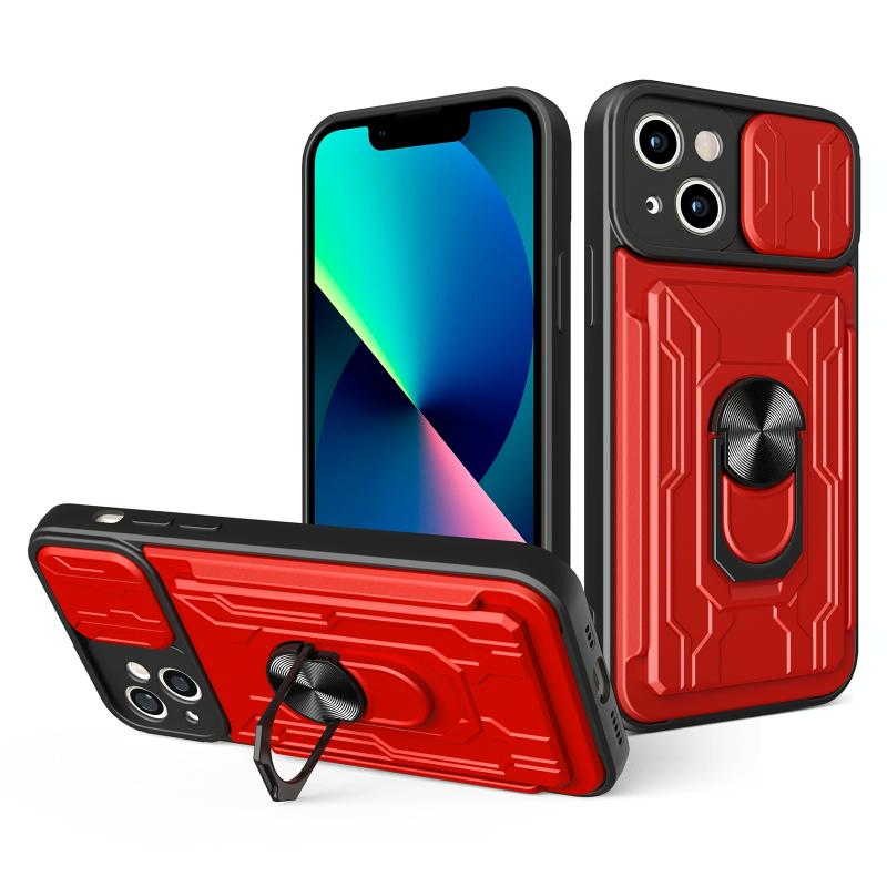 For iPhone 13 Sliding Camshield Card Phone Case(Red)