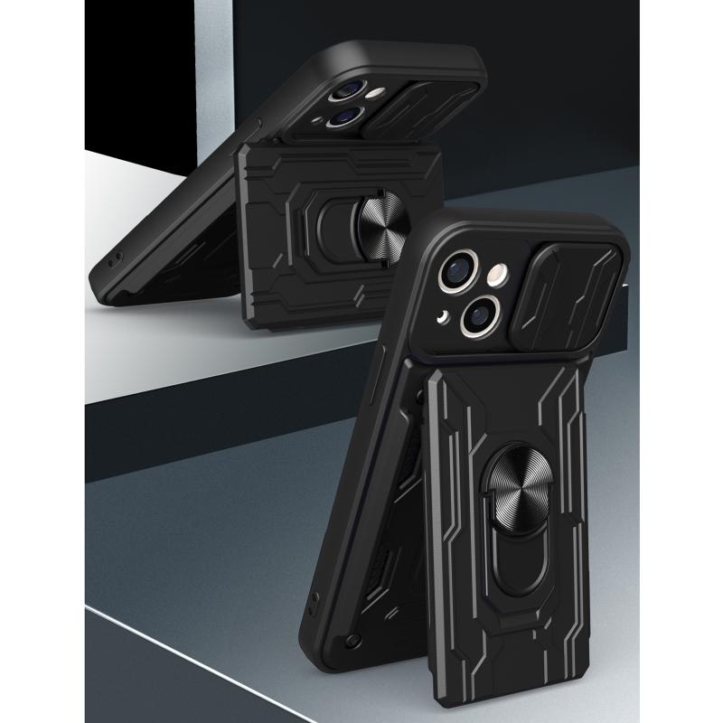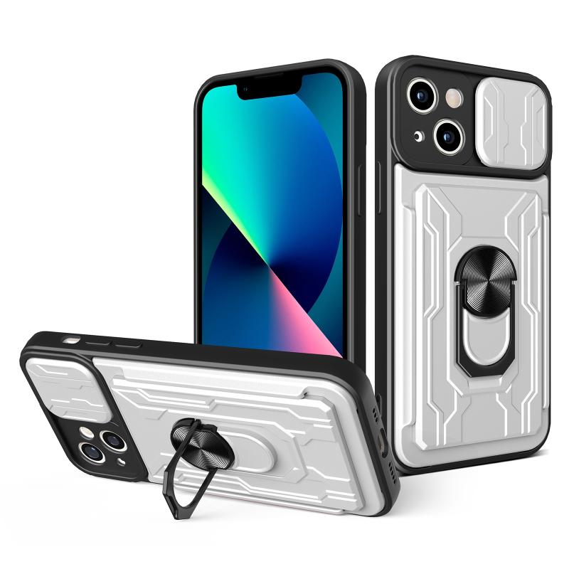 For iPhone 13 Sliding Camshield Card Phone Case(White)