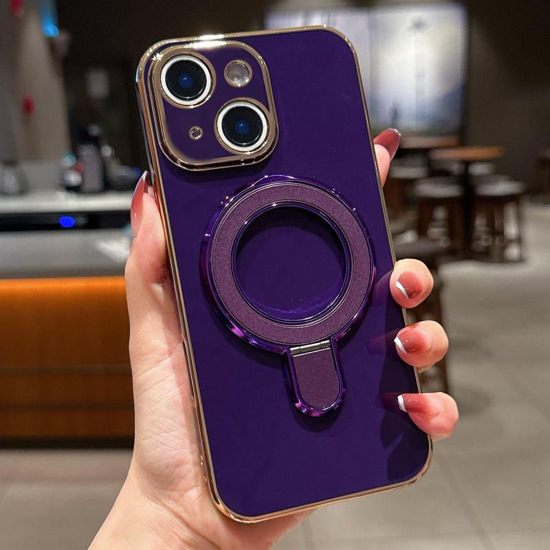 For iPhone 13 Solid Color Electroplated Metal Holder Phone Case(Dark Purple)