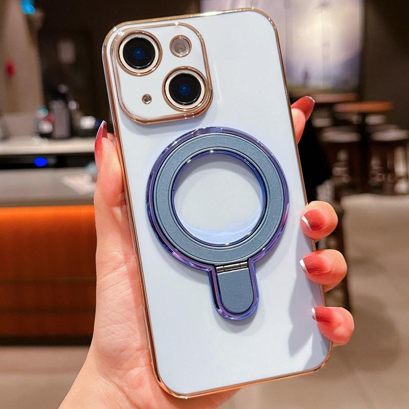 For iPhone 13 Solid Color Electroplated Metal Holder Phone Case(Sierra Blue)