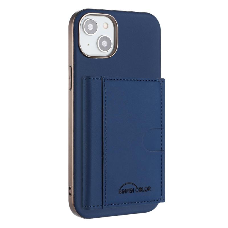For iPhone 13 Solid Color Horizontal Magnetic Card Bag RFID MagSafe Phone Case(Dark Blue)