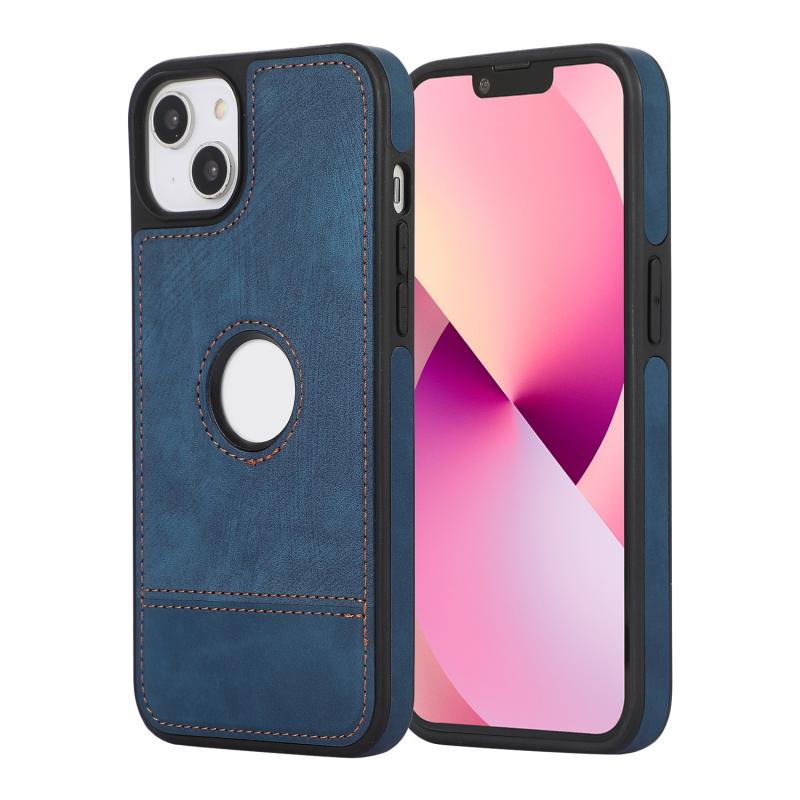 For iPhone 13 Splicing Sewing Hollow Cutout PU Phone Case(Blue)