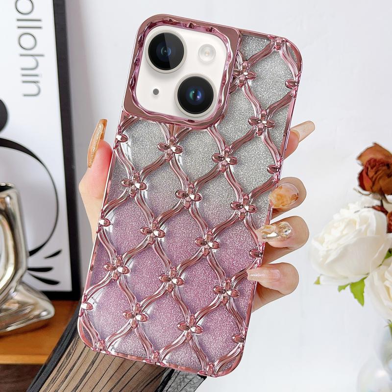 For iPhone 13 Star Flower Electroplated TPU Phone Case with Gradient Glitter Paper(Pink)