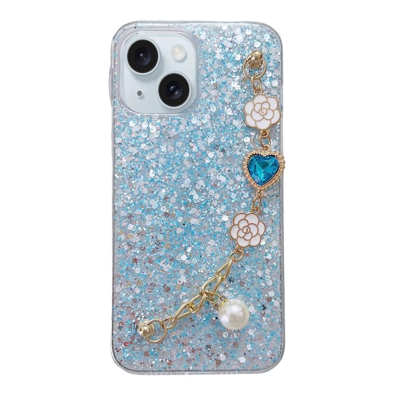 For iPhone 13 Starry Sequin Love Gem Chain Epoxy TPU Phone Case(Blue)