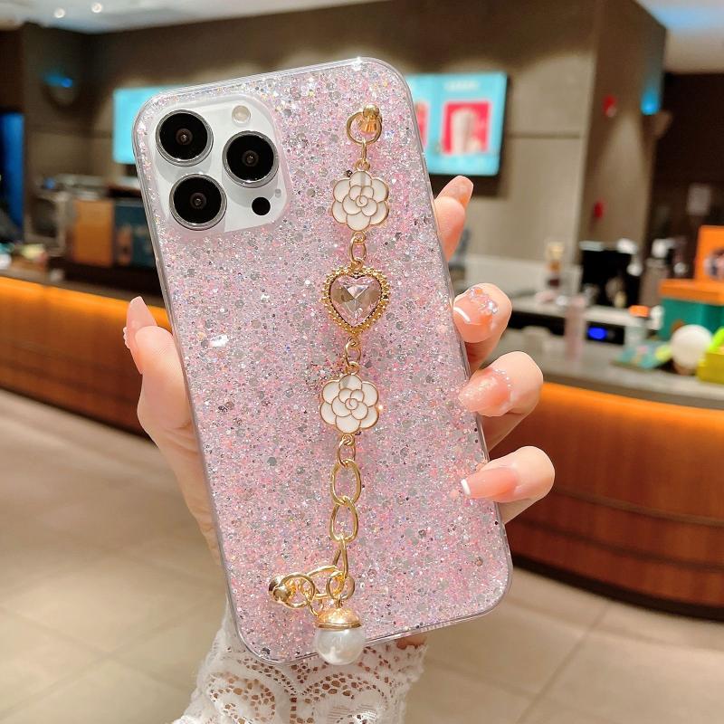 For iPhone 13 Starry Sequin Love Gem Chain Epoxy TPU Phone Case(Pink)