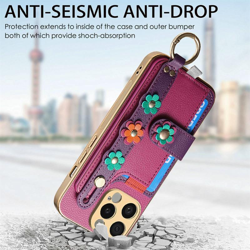 For iPhone 13 Stereoscopic Flowers Wristband Card Bag Phone Case(Purple)