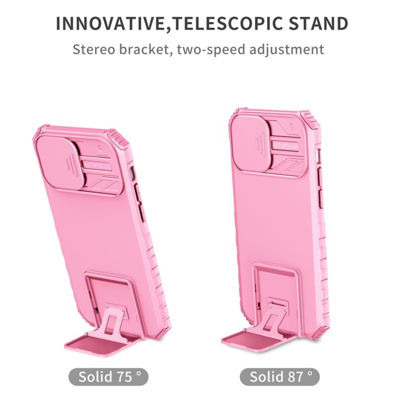 For iPhone 13 Stereoscopic Holder Sliding Camshield Phone Case(Pink)