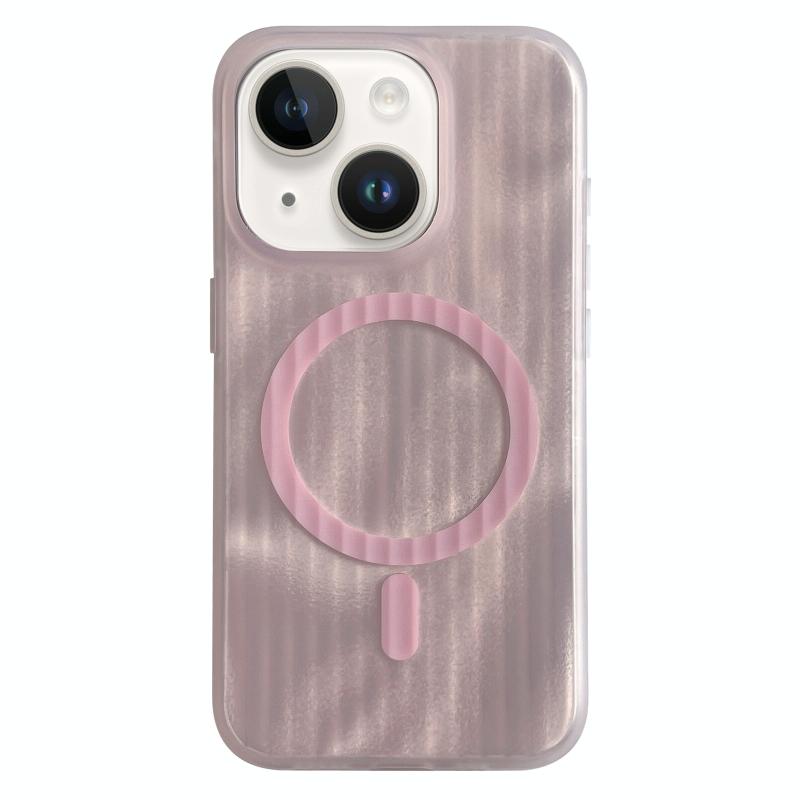 For iPhone 13 Striped Skin Feel Magnetic Magsafe Phone Case(Pink)