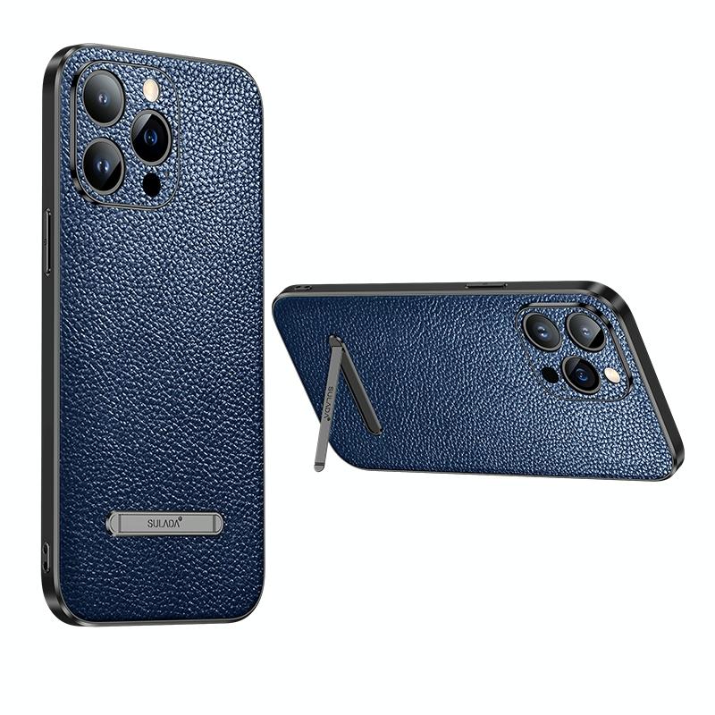 For iPhone 13 SULADA Invisible Bracket Leather Back Cover Phone Case(Blue) (SULADA)